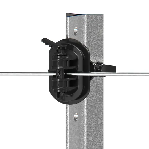 Gallagher steel post pinlock insulators for permanent electric fencing on Y posts, Waratahs and other steel posts across New Zealand. Pinlock design lets you drop and re tension wires quickly with no tools, while the heavy duty double shield and wide jaw keep high tensile hot wires secure and well insulated in tough Kiwi conditions.