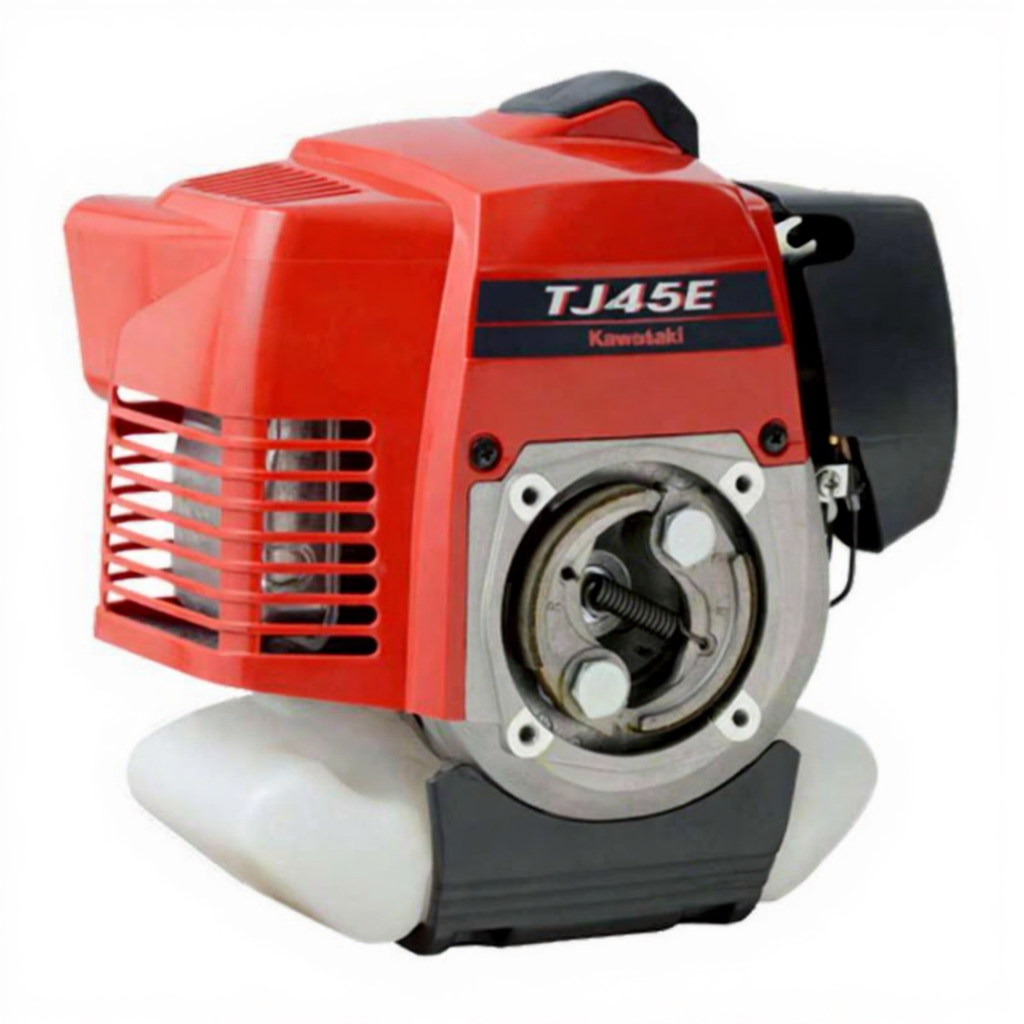 Kawasaki TJ45E-KS61 1.9hp 2 stroke engine with centrifugal clutch, designed as a professional powerhead for brushcutters, trimmers and other handheld gear. The 45cc air cooled engine with diaphragm carburettor delivers reliable Kawasaki performance in a compact 3.9 kg package, ideal for commercial and rural users across New Zealand.