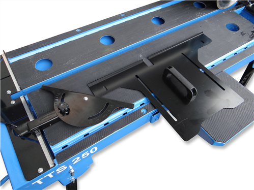 Heavy duty Tusk TTS250 wet tile saw designed for cutting marble, porcelain, terracotta and ceramic tiles with long, accurate rips and mitres. A smooth sliding guide rail, adjustable cutting head and water fed blade give you up to 940 mm cutting length and 67 mm depth with clean edges and low dust, ideal for professional tilers working on bathrooms, kitchens and outdoor areas across New Zealand.